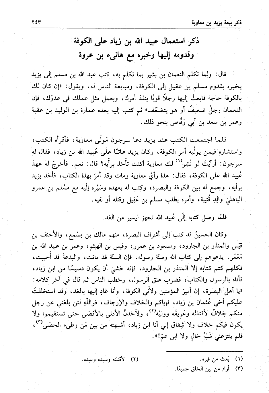 فلما اجتمعت الكتب عند يزيد دعا سرجون مولى معاوية ، فأقرأه الكتب ، واستشاره فيمن يوليه أمر الكوفة ، وكان يزيد عاتباً على عبيد الله بن زياد ، فقال له سرجون : أرأيت لو نشر لك معاوية أكنت تأخذ برأيه ؟ قال : نعم . فأخرج له عهد عبيد الله على الكوفة ، فقال : هذا رأي معاوية ومات وقد أمر بهذا الكتاب ، فأخذ يزيد برأيه ، وجمع له بين الكوفة والبصرة ، وكتب له بعهده وسيره إليه مع مسلم بن عمرو الباهلي والد قتيبة ، وأمره بطلب مسلم بن عقيل وقتله أو نفيه .