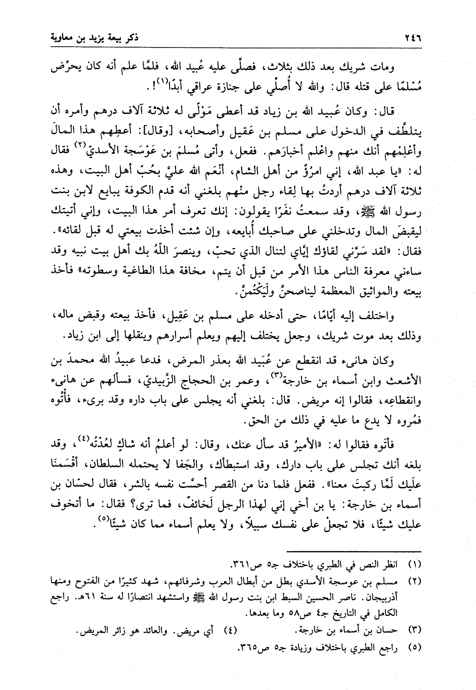 واختلف إليه أياماً ، حتى أدخله على مسلم بن عقيل ، فأخذ بيعته وقبض ماله ، وذلك بعد موت شريك ، وجعل يختلف إليهم ويعلم أسرارهم وينقلها إلى ابن زياد .