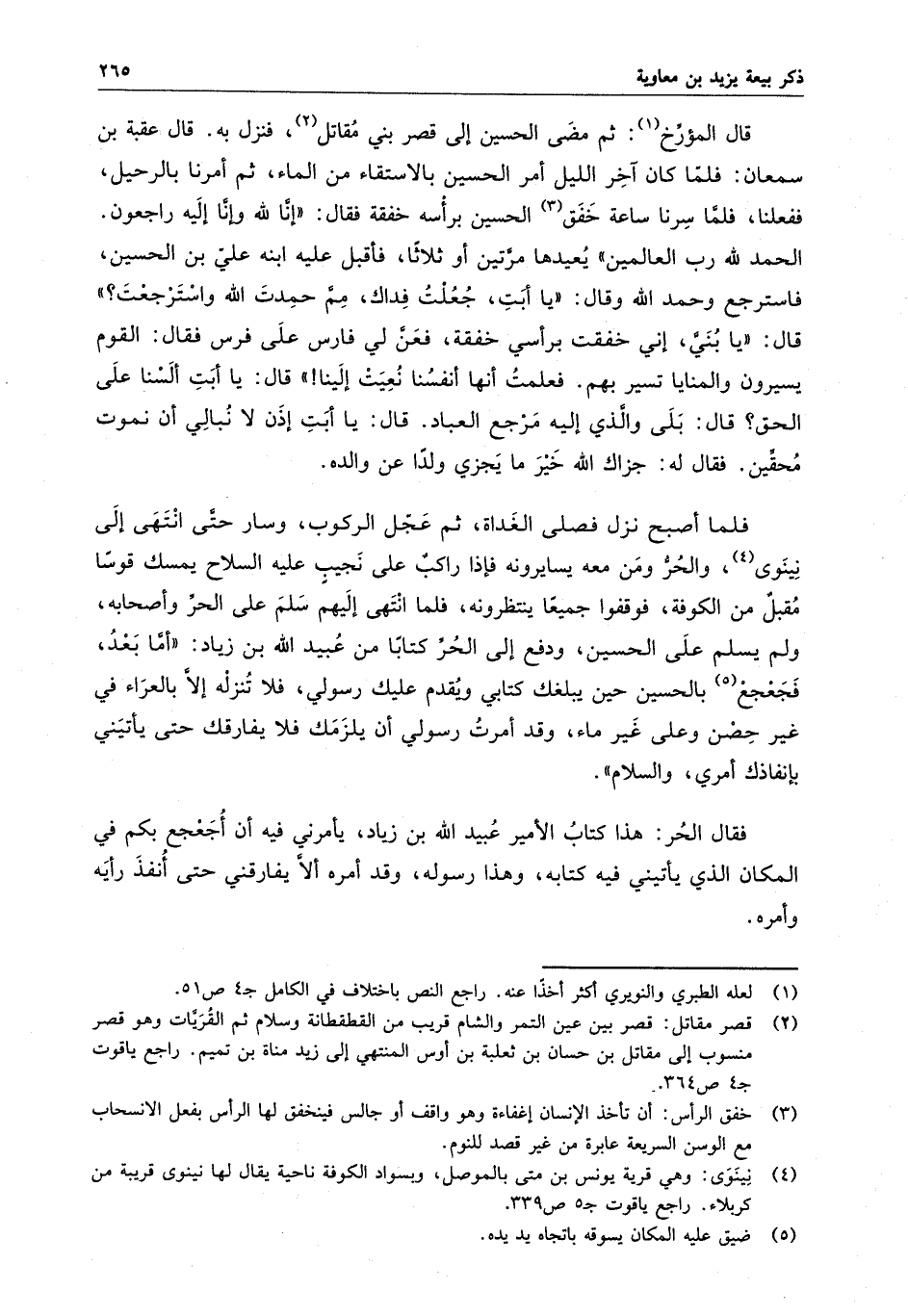 فقال الحر : هذا كتاب الأمير عبيد الله بن زياد ، يأمرني فيه أن أجعجع بكم في المكان الذي يأتيني فيه كتابه ، وهذا رسوله ، وقد أمره ألا يفارقني حتى أنفذ رأيه وأمره .