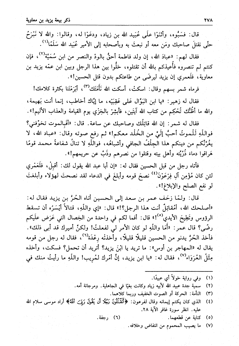 قال : فسبوه وأثنوا على عبيد الله بن زياد ، ودعوا له ، وقالوا : والله لا نبرح حتى نقتل صاحبك ومن معه أو نبعث به وبأصحابه إلى الأمير عبيد الله سلماً .