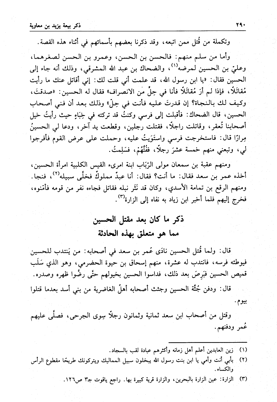 ذكر ما كان بعد مقتل الحسين مما هو متعلق بهذه الحادثة