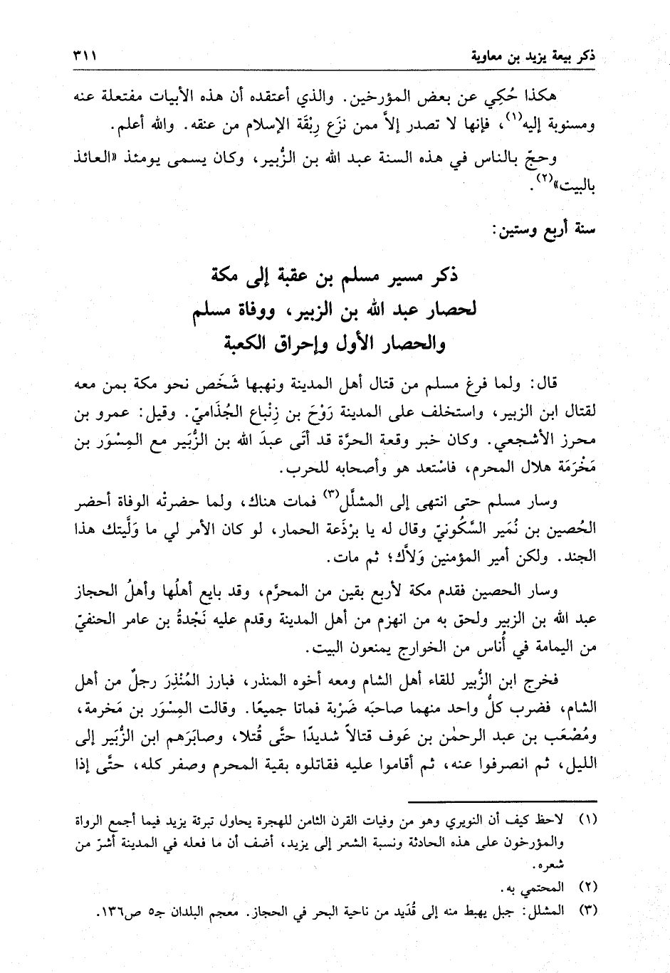 ذكر مسير مسلم بن عقبة إلى مكة لحصار عبد الله بن الزبير ، ووفاة مسلم والحصار الأول وإحراق الكعبة