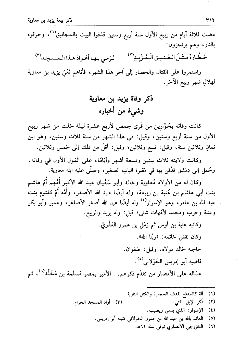 ذكر وفاة يزيد بن معاوية وشيء من أخباره