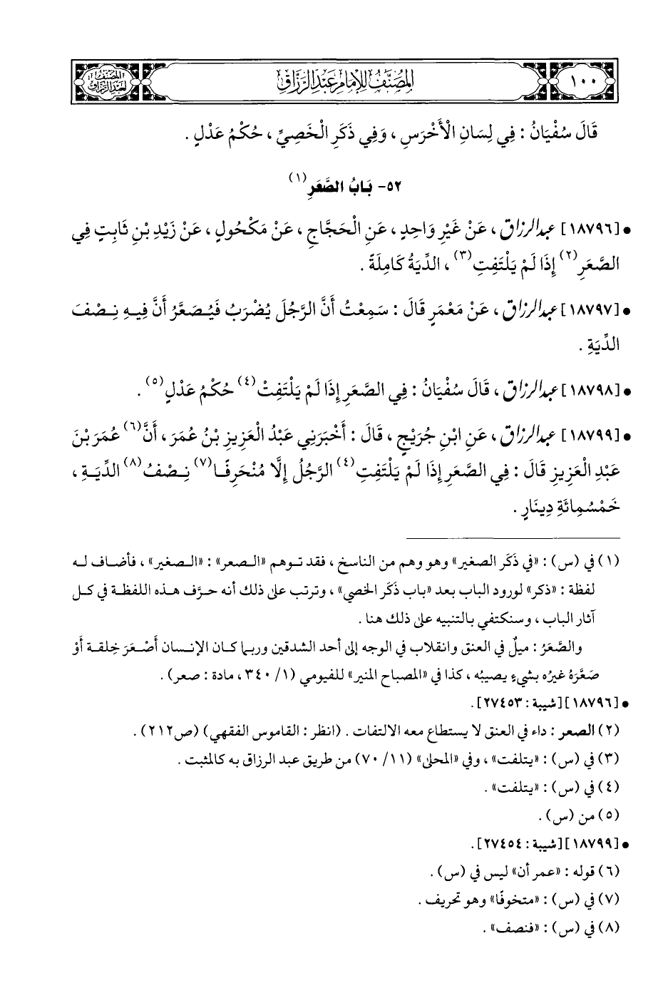 • [١٨٧٩٨] عبد الرزاق، قَالَ سُفْيَانُ: فِي الصَّعَرِ إِذَا لَمْ يَلْتَفِتْ (¬٤) حُكْمُ عَدْلٍ (¬٥).