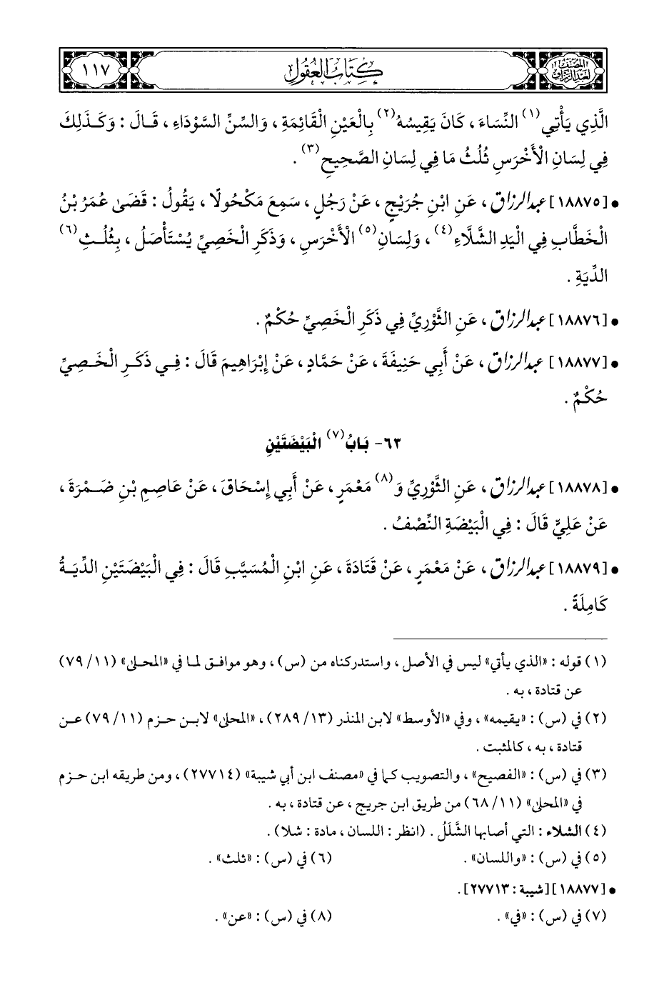 (¬٣) في (س): "الفصيح"، والتصويب كما في "مصنف ابن أبي شيبة" (٢٧٧١٤)، ومن طريقه ابن حزم في "المحلى" (١١/ ٦٨) من طريق ابن جريج، عن قتادة، به.