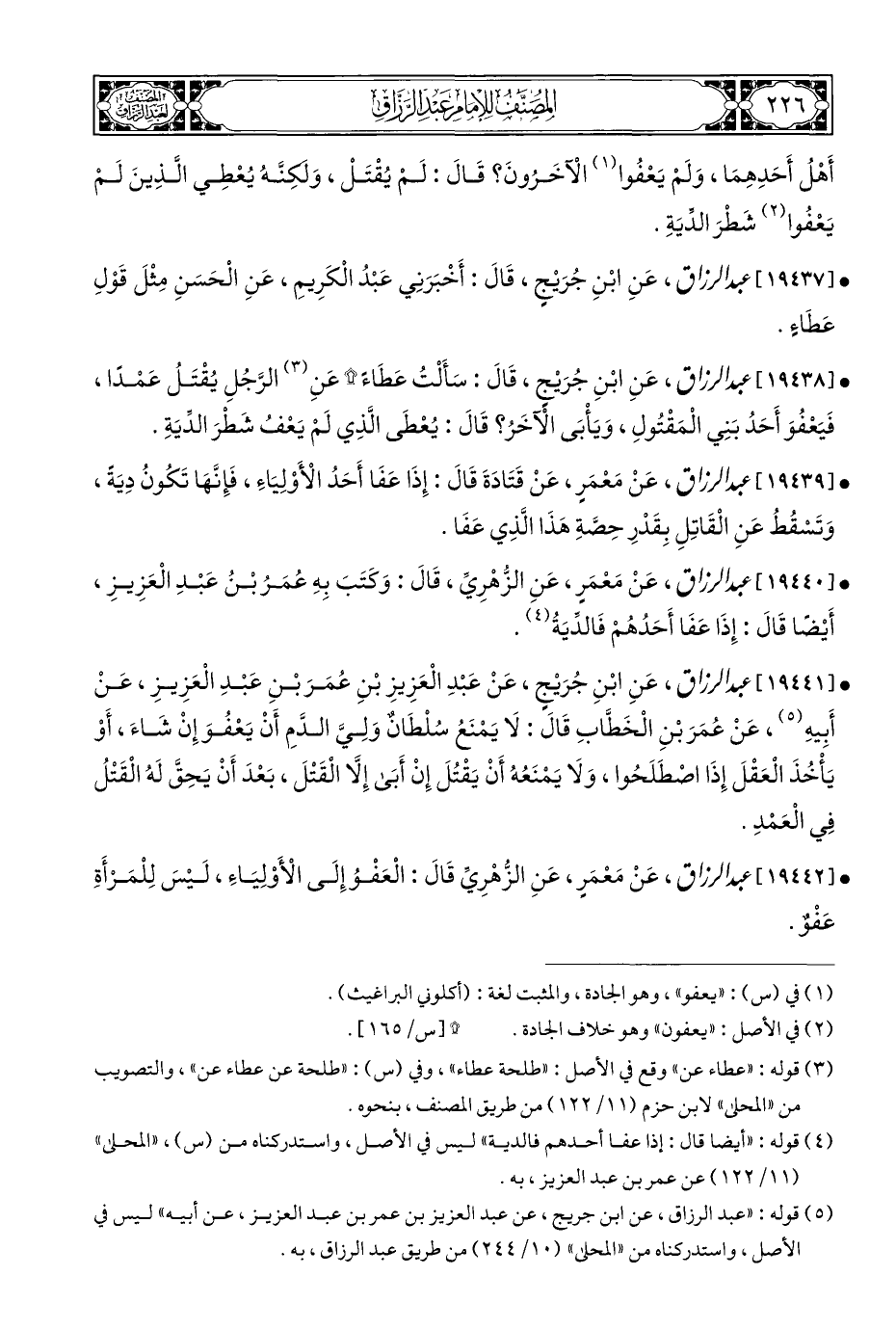 (¬٥) قوله: "عبد الرزاق، عن ابن جريج، عن عبد العزيز بن عمر بن عبد العزيز، عن أبيه" ليس في الأصل، واستدركناه من "المحلى" (١٠/ ٢٤٤) من طريق عبد الرزاق، به.