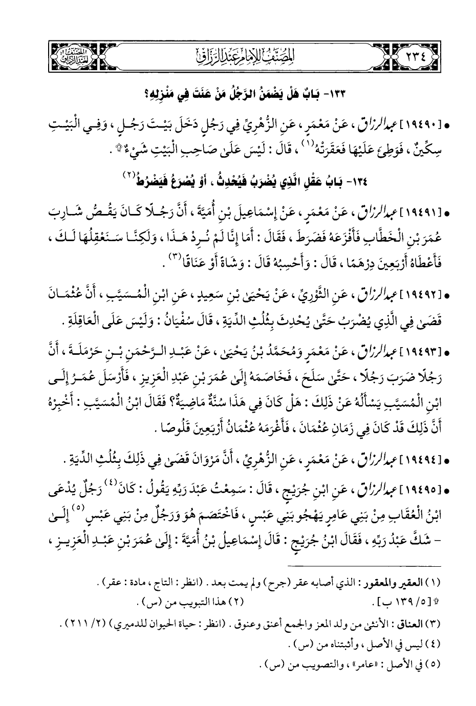 ١٣٣ - بَابٌ هَلْ يَضْمَنُ الرَّجُلُ مَنْ عَنَتَ فِي مَنْزِلِهِ؟