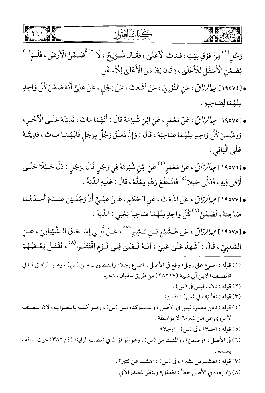 • [١٩٥٧٨] عبد الرزاق، عَنْ هُشَيْمِ بْنِ بَشِيرٍ (¬٧)، عَنْ أَبِي إِسْحَاقَ الشَّيْبَانِيِّ، عَنِ الشَّعْبِيِّ، قَالَ: أَشْهَدُ عَلَى عَلِيٍّ: أَنَّهُ قَضَى فِي قَوْمٍ اقْتَتَلُوا (¬٨)، فَقَتَلَ بَعْضُهُمْ