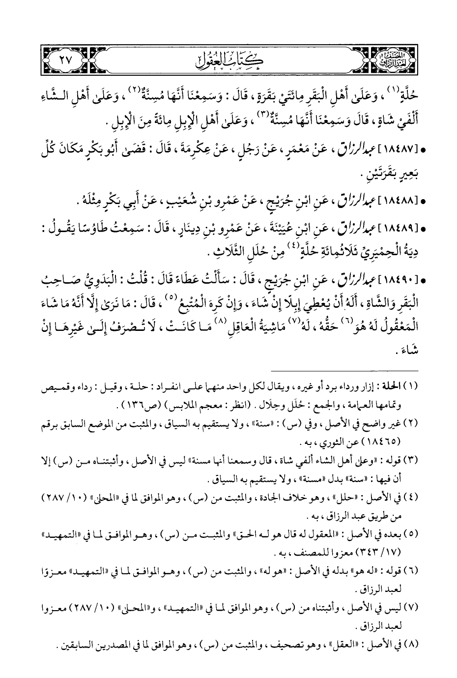 (¬٤) في الأصل: "حلل"، وهو خلاف الجادة، والمثبت من (س)، وهو الموافق لما في "المحلى" (١٠/ ٢٨٧) من طريق عبد الرزاق، به.