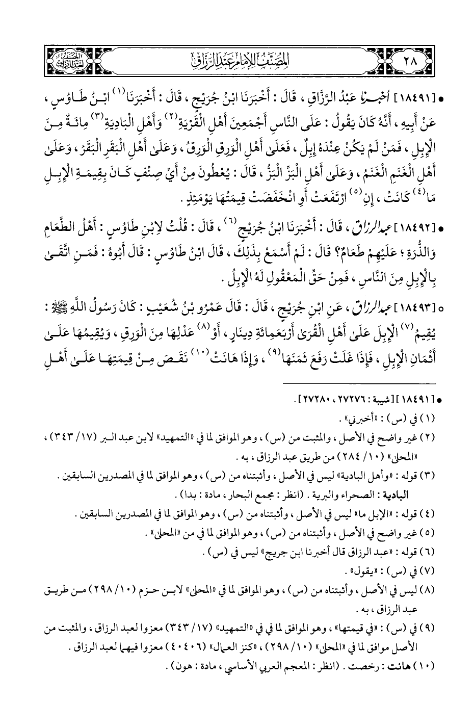 (¬٦) قوله: "عبد الرزاق قال أخبرنا ابن جريج" ليس في (س).