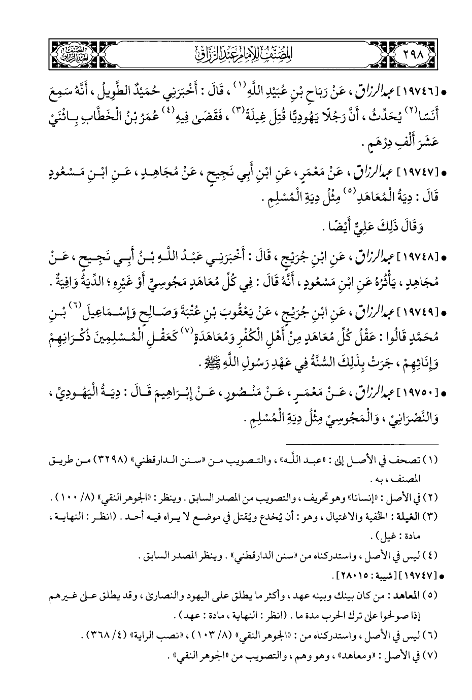 • [١٩٧٤٨] عبد الرزاق، عَنِ ابْنِ جُرَيْجٍ، قَالَ: أَخْبَرَنِي عَبْدُ اللهِ بْنُ أَبِي نَجِيحٍ، عَنْ مُجَاهِدٍ، يَأْثُرُهُ عَنِ ابْنِ مَسْعُودٍ، أَنَّهُ قَالَ: فِي كُلِّ مُعَاهَدٍ مَجُوسِيٍّ أَوْ غَيْرِهِ؛ الدِّيَةُ وَافِيَةٌ.