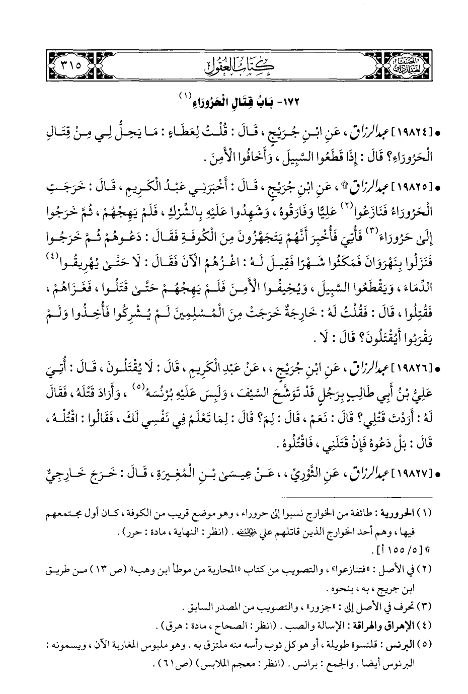 (¬١) الحرورية: طائفة من الخوارج نسبوا إلى حروراء، وهو موضع قريب من الكوفة، كان أول مجتمعهم فيها، وهم أحد الخوارج الذين قاتلهم علي - رضي الله عنه -. (انظر: النهاية، مادة: حرر).