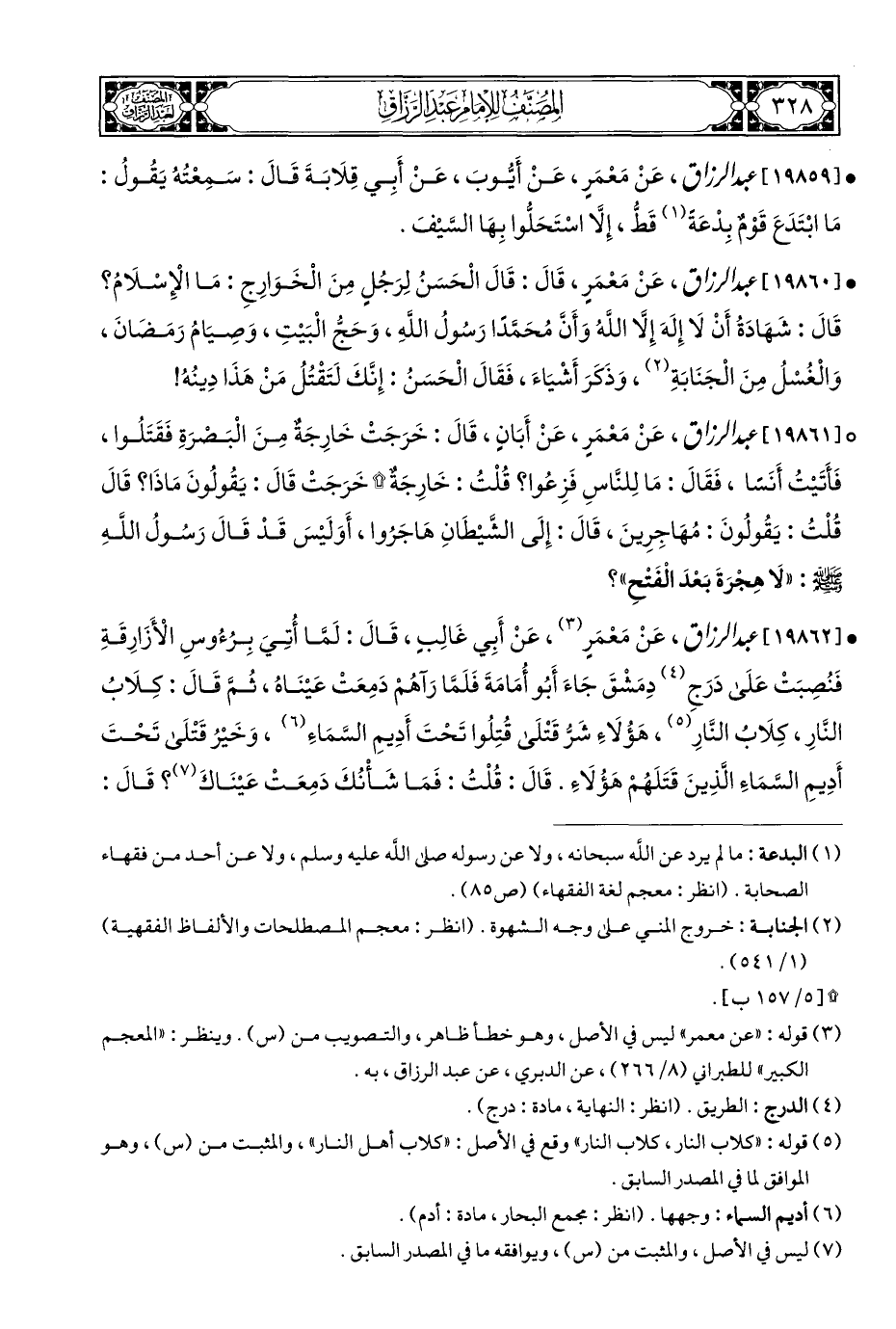 (¬٣) قوله: "عن معمر" ليس في الأصل، وهو خطأ ظاهر، والتصويب من (س). وينظر: "المعجم الكبير" للطبراني (٨/ ٢٦٦)، عن الدبري، عن عبد الرزاق، به.