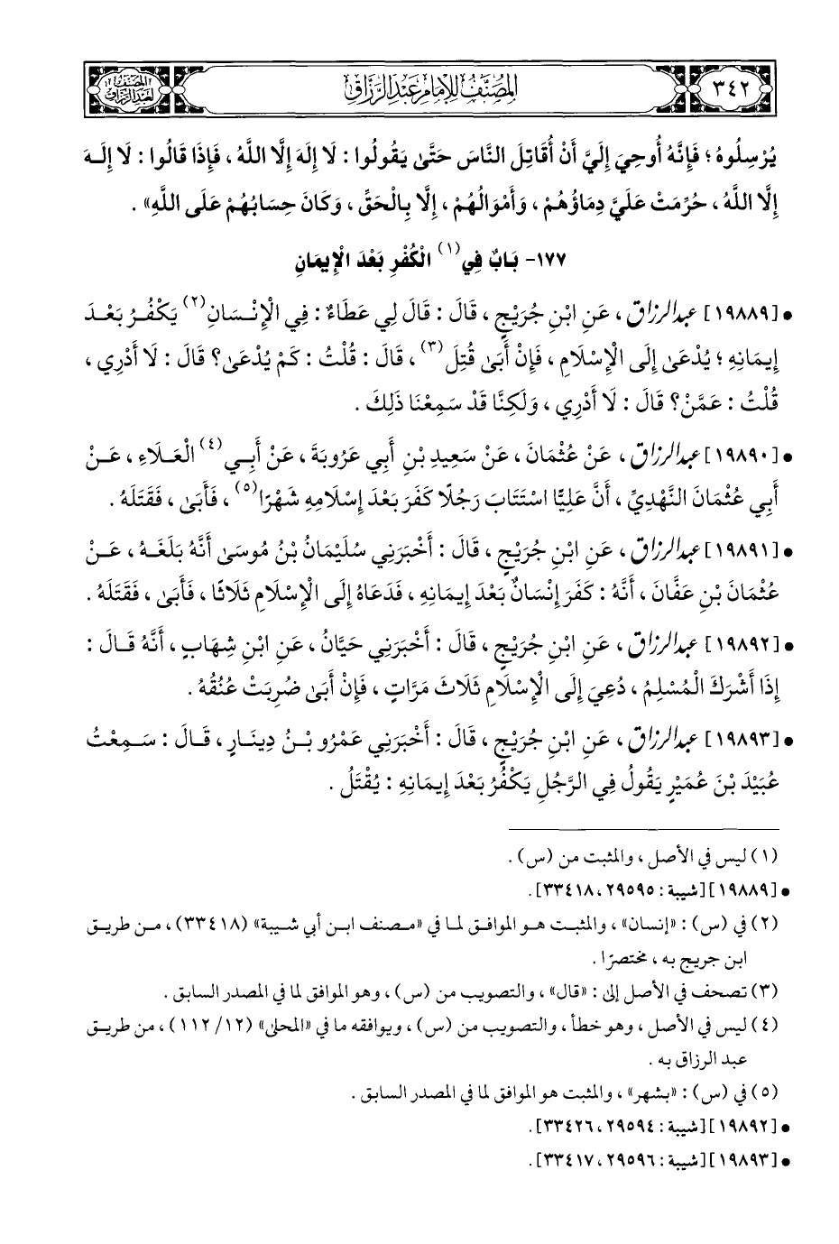 • [١٩٨٨٩] عبد الرزاق، عَنِ ابْنِ جُرَيْجٍ، قَالَ: قَالَ لِي عَطَاءٌ: فِي الْإِنْسَانِ (¬٢) يَكْفُرُ بَعْدَ إِيمَانِهِ؛ يُدْعَى إِلَى الْإِسْلَامِ، فَإِنْ أَبَى قُتِلَ (¬٣)، قَالَ: قُلْتُ: كَمْ يُدْعَى؟ قَالَ: لَا أَدْرِي، قُلْتُ: عَمَّنْ؟ قَالَ: لَا أَدْرِي، وَلكنَّا قَدْ سَمِعْنَا ذَلِكَ.