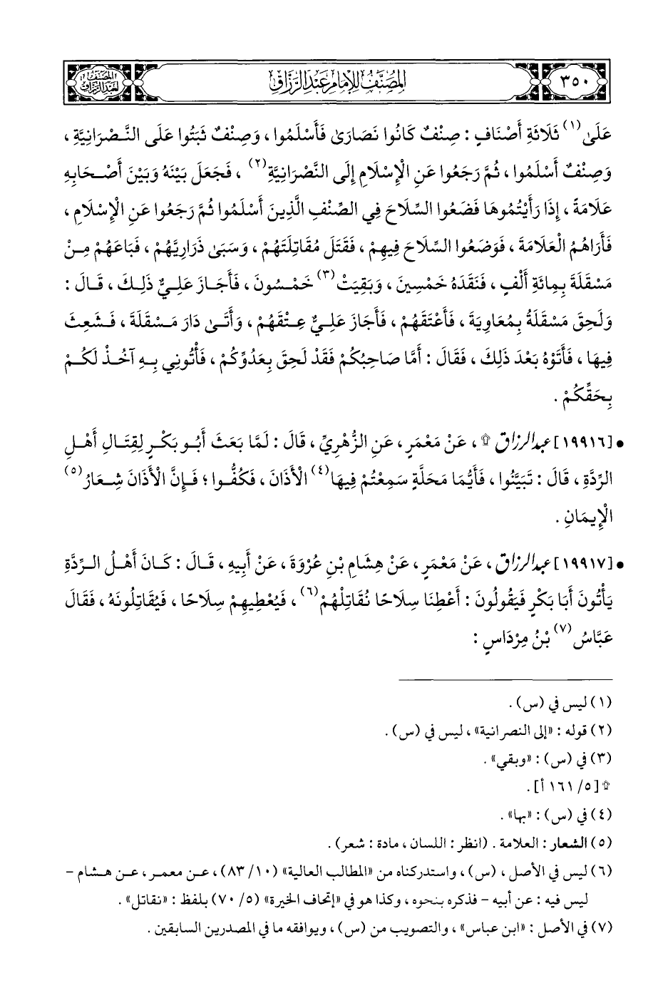 • [١٩٩١٧] عبد الرزاق، عَنْ مَعْمَرٍ، عَنْ هِشَامِ بْنِ عُرْوَةَ، عَنْ أَبِيهِ، قَالَ: كَانَ أَهْلُ الرِّدَّةِ يَأْتُونَ أَبَا بَكْرٍ فَيقُولُونَ: أَعْطِنَا سِلَاحًا نُقَاتِلْهُمْ (¬٦)، فَيُعْطِيهِمْ سِلَاحًا، فَيُقَاتِلُونَه، فَقَالَ عَبَّاسُ (¬٧) بْنُ مِرْدَاسٍ: