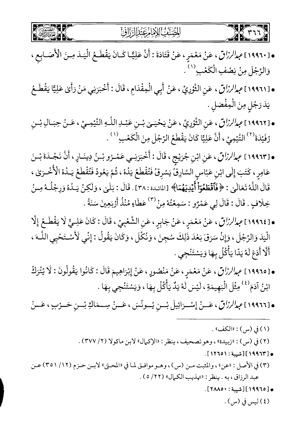 (¬٣) في الأصل: "عن"، والمثبت من (س)، وهو موافق لما في "المحلى" لابن حزم (١٢/ ٣٥١) عن عبد الرزاق، به. ينظر: "تهذيب الكمال" (٥/ ٢٢).