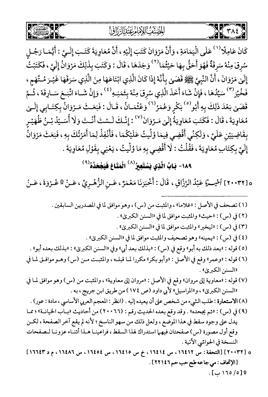 ° [٢٠٠٣٣] أخبرنا عَبْدُ الرَّزَّاقِ، قَالَ: أَخْبَرَنَا مَعْمَرٌ، عَنِ الزُّهْرِيِّ، عَنْ * عُرْوَةَ، عَنْ