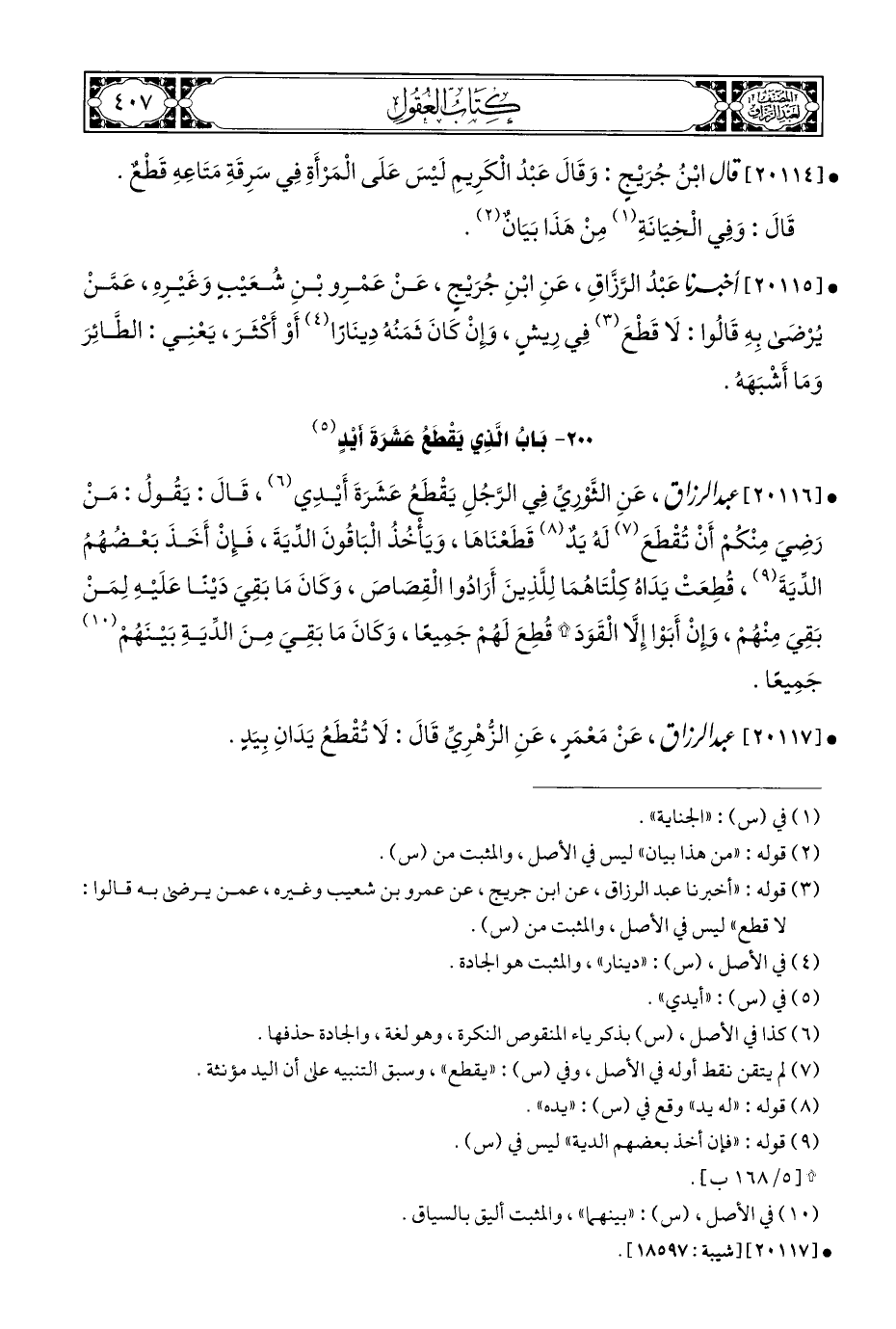 (¬٣) قوله: "أخبرنا عبد الرزاق، عن ابن جريج، عن عمرو بن شعيب وغيره، عمن يرضى به قالوا: لا قطع" ليس في الأصل، والمثبت من (س).