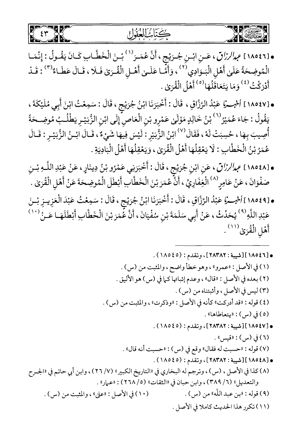 • [١٨٥٤٩] أخبرنا عَبْدُ الرَّزَّاقِ، قَالَ: أَخْبَرَنَا ابْنُ جُرَيْجٍ، قَالَ: سَمِعْتُ عَبْدَ الْعَزِيزِ بْنَ عَبْدِ اللَّهِ (¬٩) يُحَدِّثُ، عَنْ أَبِي سَلَمَةَ بْنِ سُفْيَانَ، أَنَّ عُمَرَ بْنَ الْخَطَّابِ أبْطَلَهَا عَنْ (¬١٠) أَهْلِ الْقُرَى (¬١١).