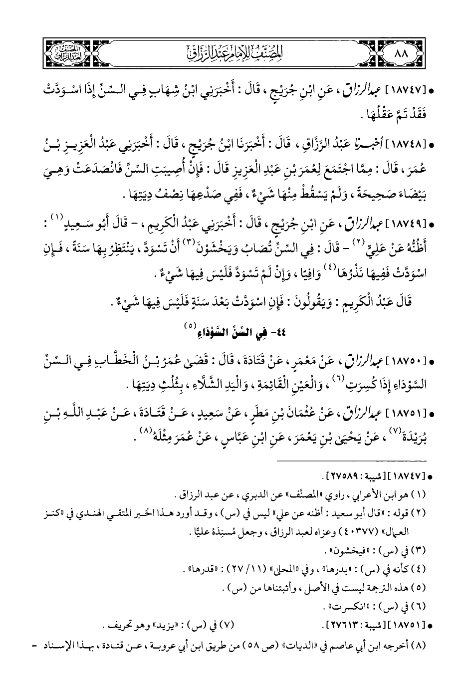 (¬١) هو ابن الأعرابي، راوي "المصنَّف" عن الدبري، عن عبد الرزاق.