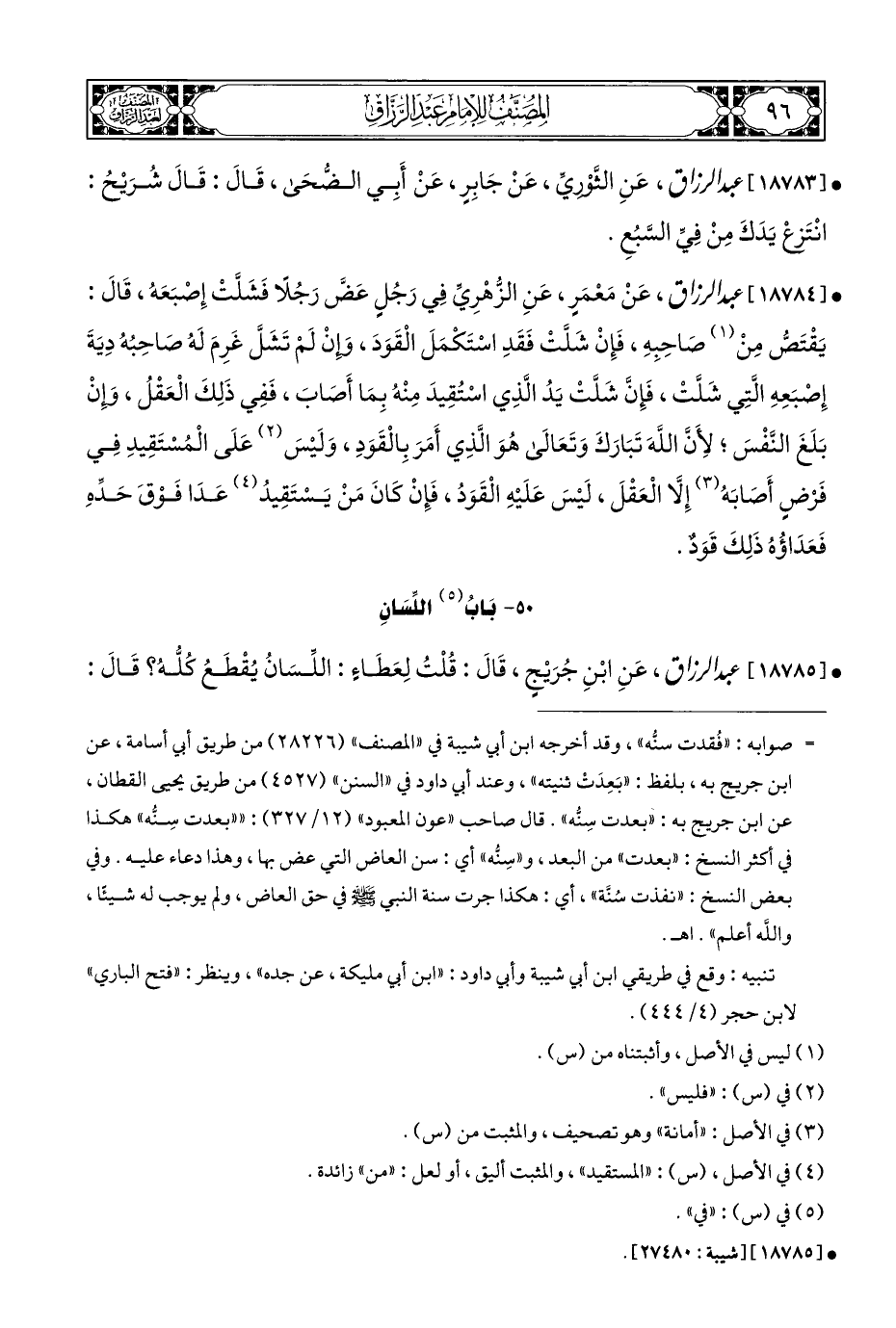 • [١٨٧٨٥] عبد الرزاق، عَنِ ابْنِ جُرَيْجٍ، قَالَ: قُلْتُ لِعَطَاءٍ: اللِّسَانُ يُقْطَعُ كُلُّهُ؟ قَالَ: