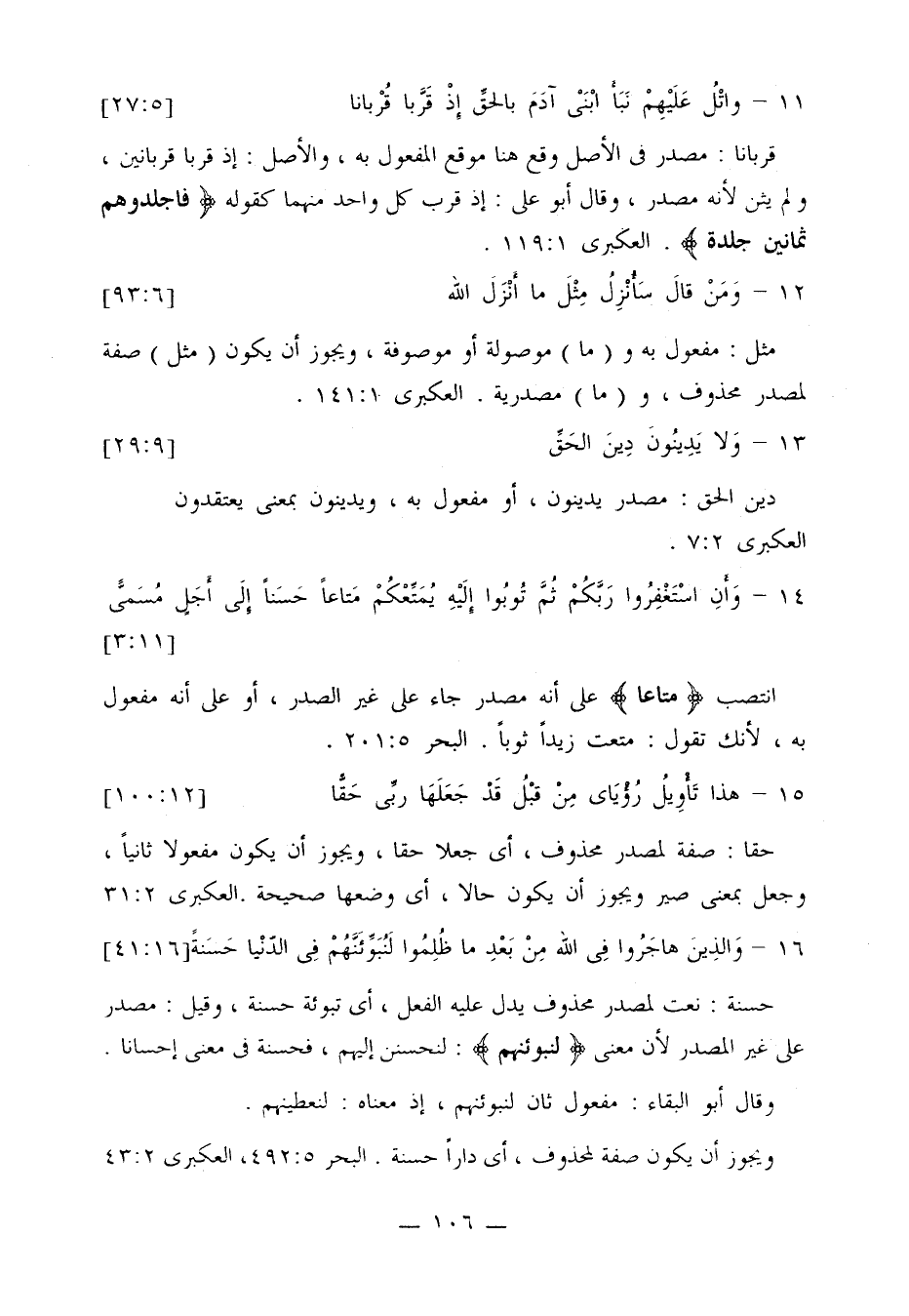 العكبري 15: 108، الكشاف 1: 554، البحر 3: 333، معاني القرآن للزجاج 1: 101.