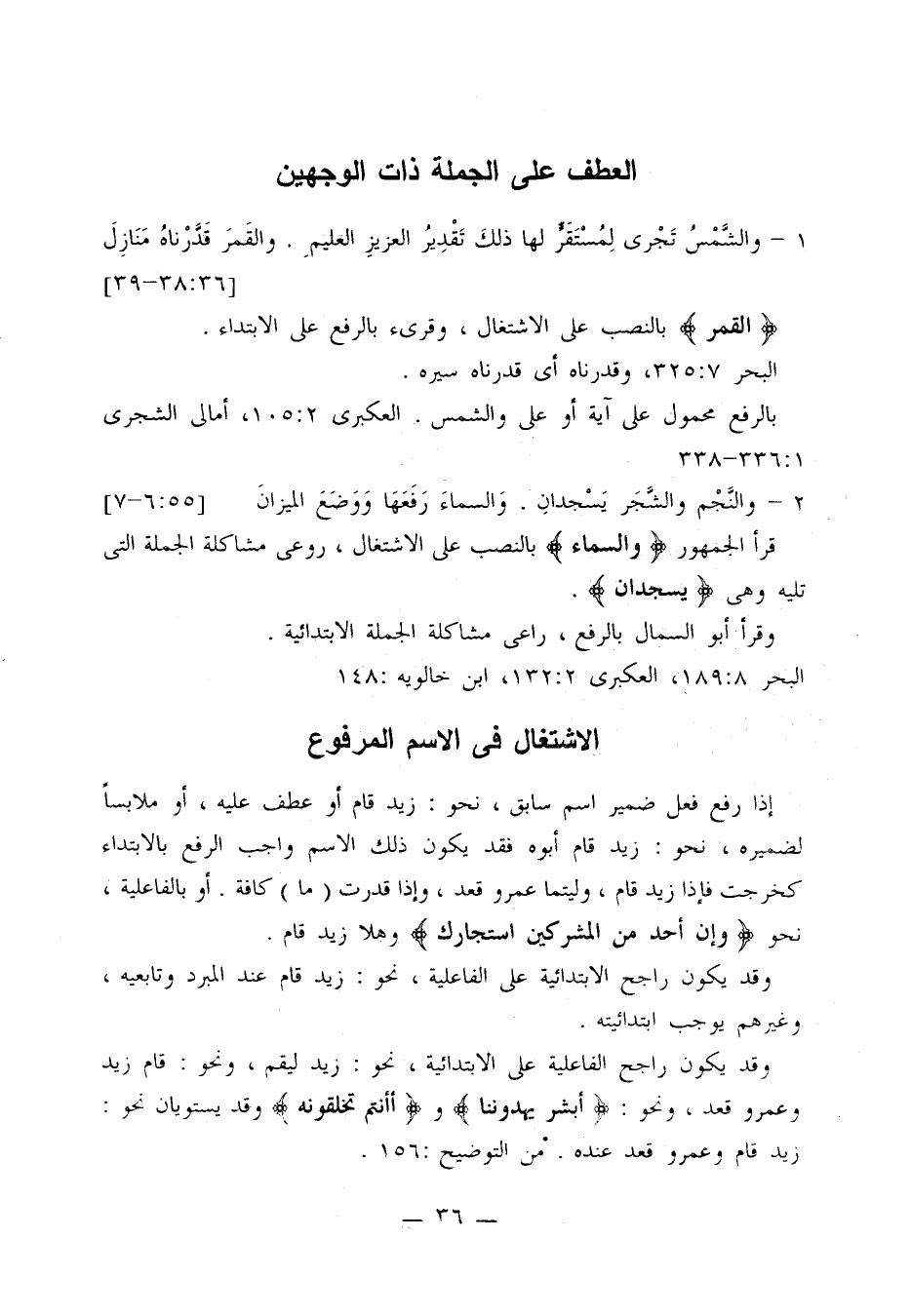 سيبويه 1: 457، المقتضب 2: 74 - 75، ابن يعيش 9: 9، الرضي 2: 237، جاء ذلك في قوله تعالى: