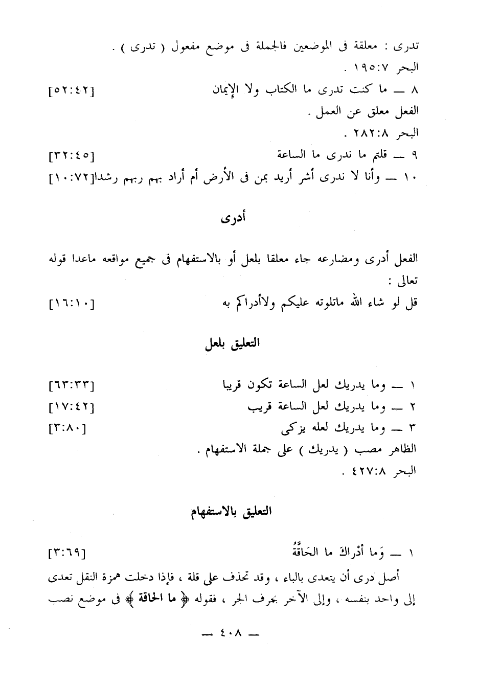 مضارع (درى) جاء معلقًا بلعل أو بالاستفهام في جميع مواقعه في القرآن.