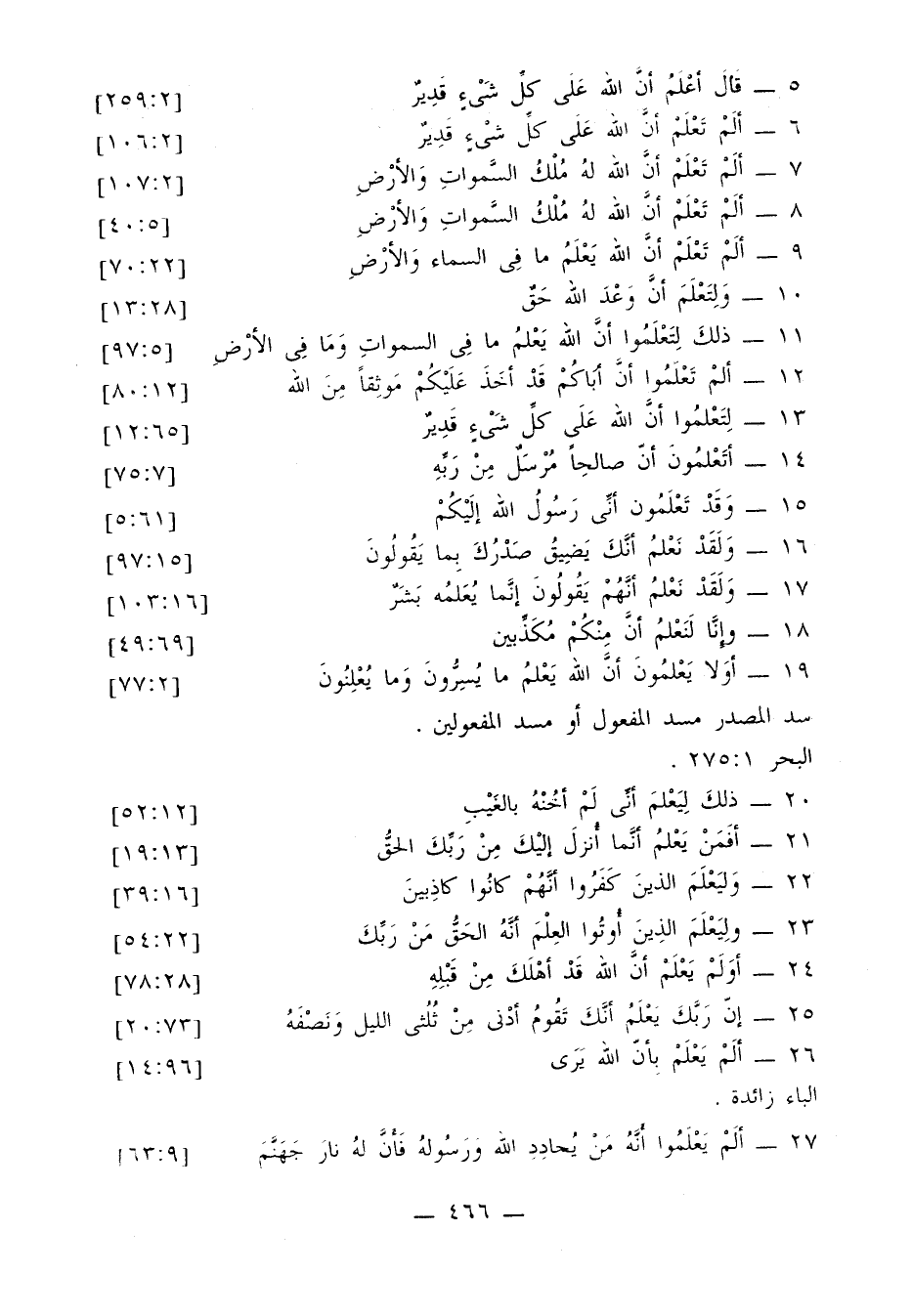 2 - كل ما جاء من أمر (علم): أعلم أعلموا كانت بعده (أن) المشددة ... 31 موضعًا.