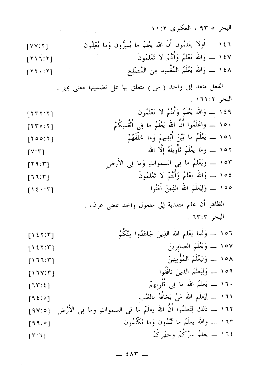 العلم هنا كالمعرفة تعدى إلى واحد، وهو متعلق بالذوات، وليس متعلقًا بالنسبة، ومن جعله متعلقًا بالنسبة وقدر مفعولا فقد أبعد. البحر 4: 513.