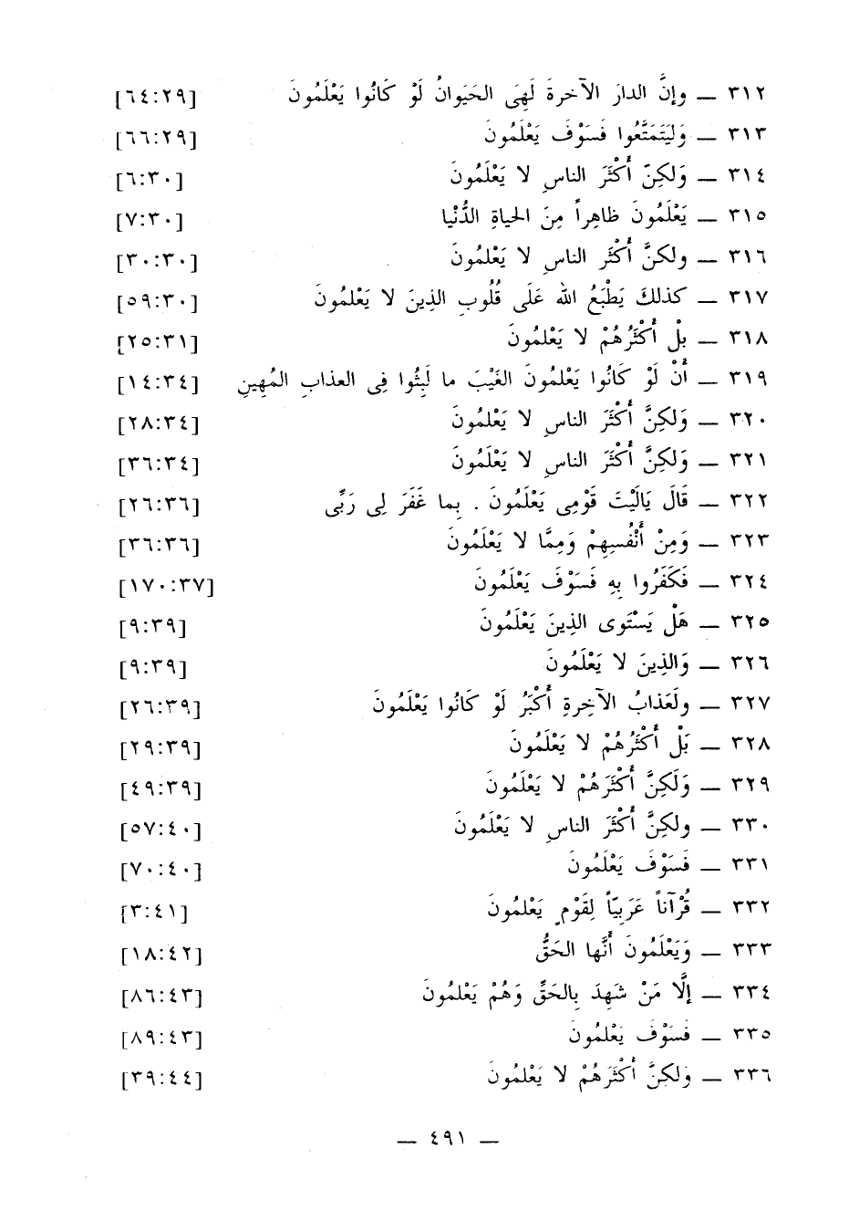 309 - ولكن أكثرهم لا يعلمون [28: 13]