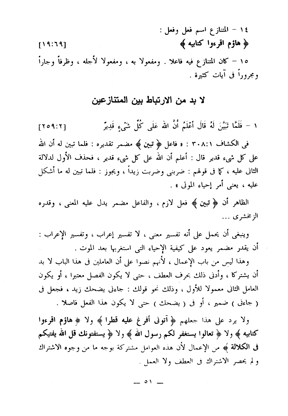 7 - جاء العاملان المتنازعان فعلين في كثير من المواضع في القرآن.