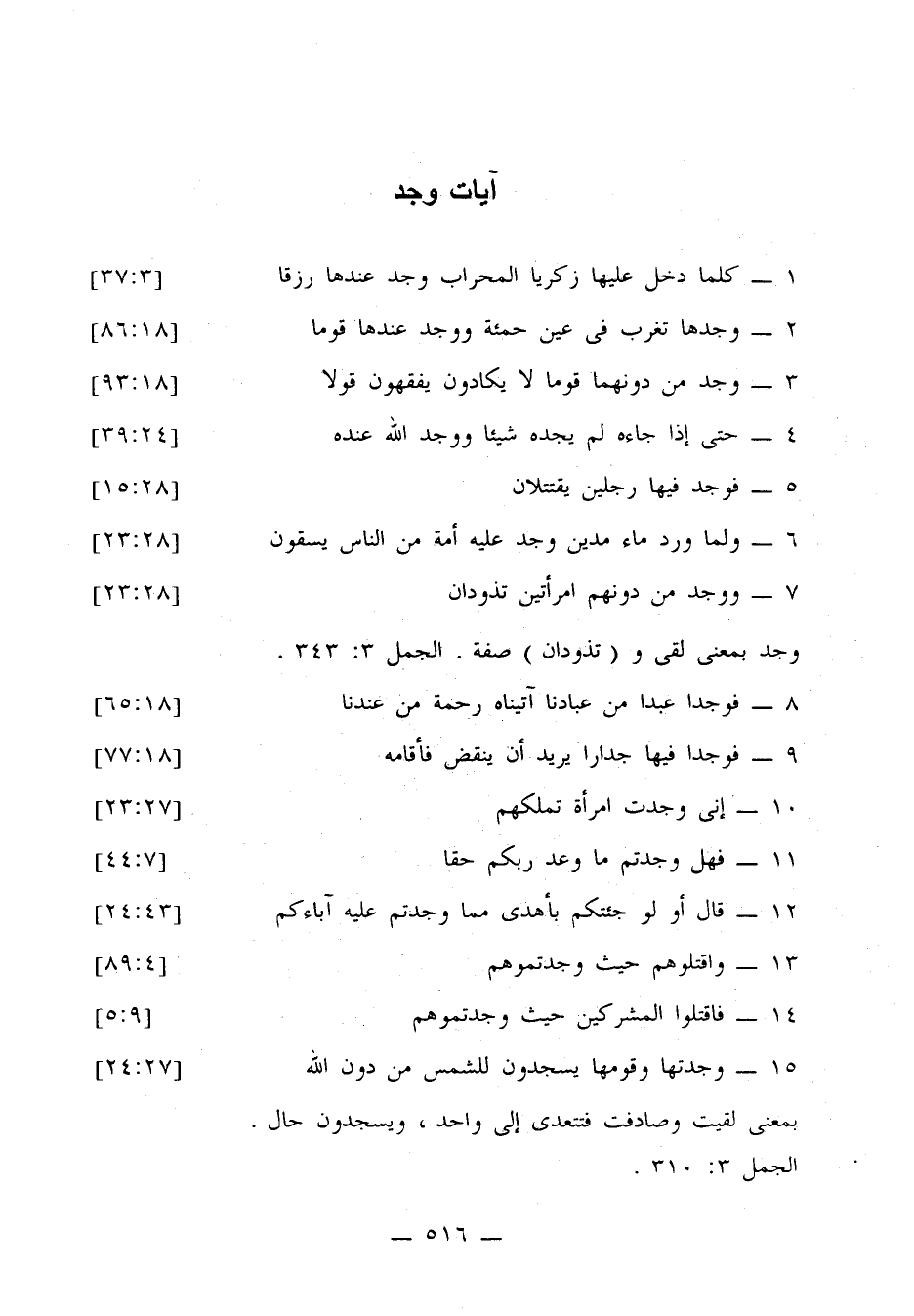 تحتمل أن تكون من الوجدان بمعنى اللقاء والمصادفة، فتتعدى إلى واحد. وأن تكون بمعنى العلم، فتنصب مفعولين. الجمل 2: 125.