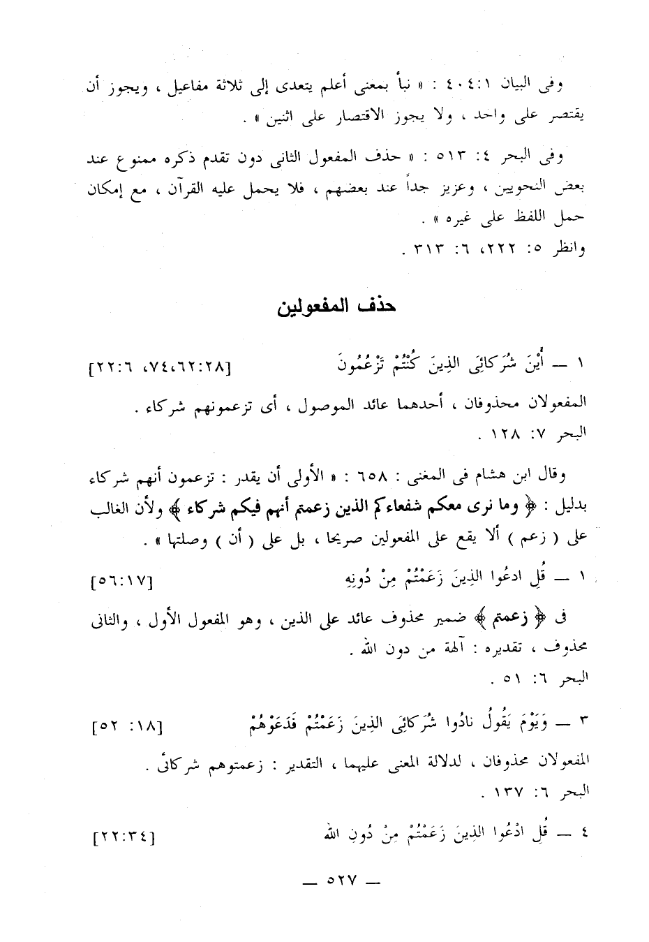 في سيبويه 1: 18: «باب الفاعل الذي يتعداه فعله إلى مفعولين، وليس لك أن تقتصر على أحد المفعولين دون الآخر، وذلك قولك: حسب عبد الله زيدا بكرًا.