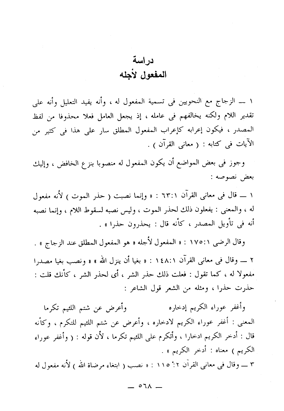 8 - الفعل لا يقتضي إلا مفعولاً لأجله واحدًا إلا بالعطف أو البدل.