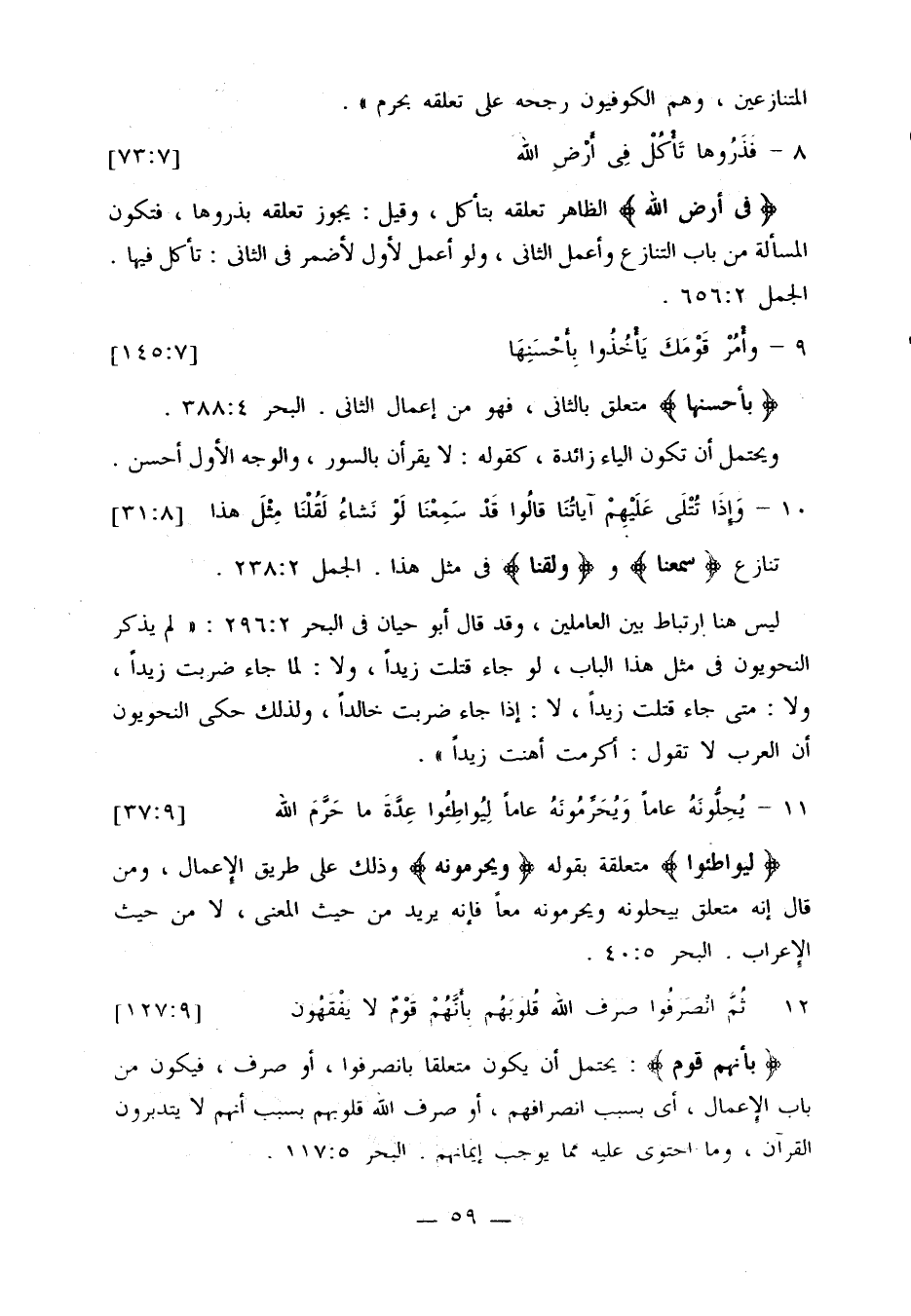 {عليكم} متعلق بحرم، لا يأتل فهو من إعمال الثاني، وقال ابن الشجري: إن علقته يأتل فهو جيد، لأنه أسبق، وهو اختيار الكوفيين.