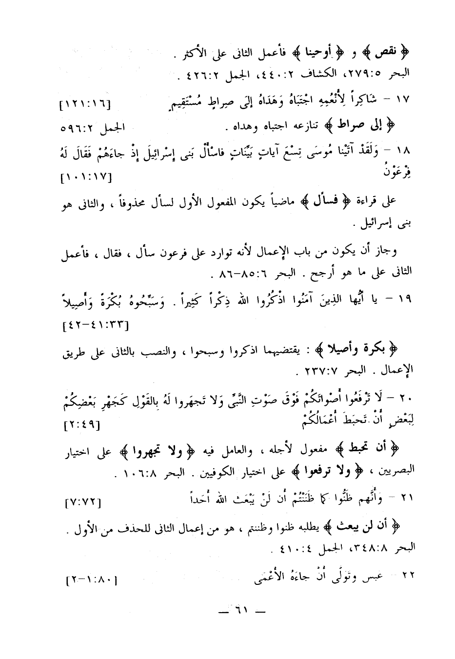 البحر 5: 234، الجمل 2: 399، الإعراب المنسوب للزجاج: 455.
