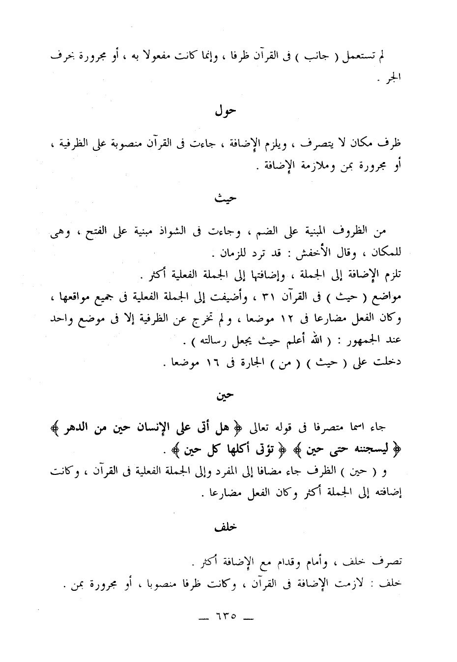 من الظروف التي لا تتصرف. جاءت في 51 موضعًا من القرآن، وكانت ملازمة للإضافة ومنصوبة على الظرفية، ومجرورة بمن إلا في مواضع قليلة.