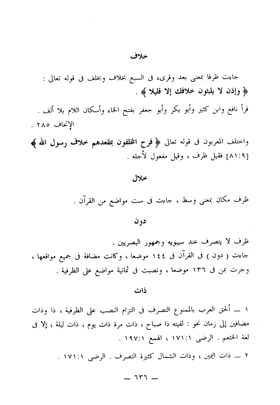 خلف: لازمت الإضافة في القرآن، وكانت ظرفًا منصوبًا، أو مجرورة بمن.
