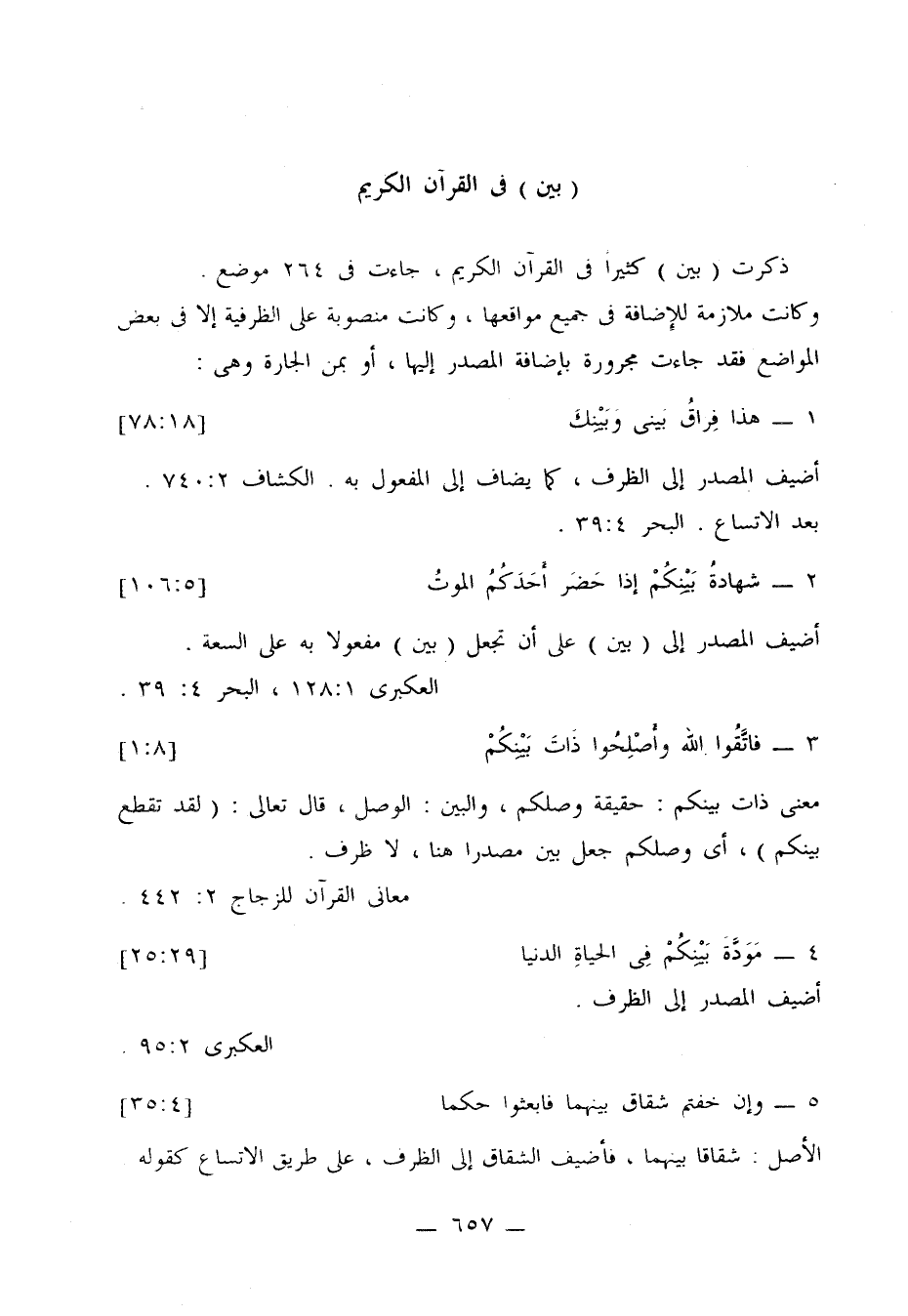 وفى الهمع 1: 211 - 212: "قال أبو حيان: أصل بين أن تكوم ظرفا للمكان، وتتخلل بين شيئين أو ما فى تقدير شيئين أو أشياء، ثم لما لحقتها ما، أو الألف لزمت الظرفية الزمانية.