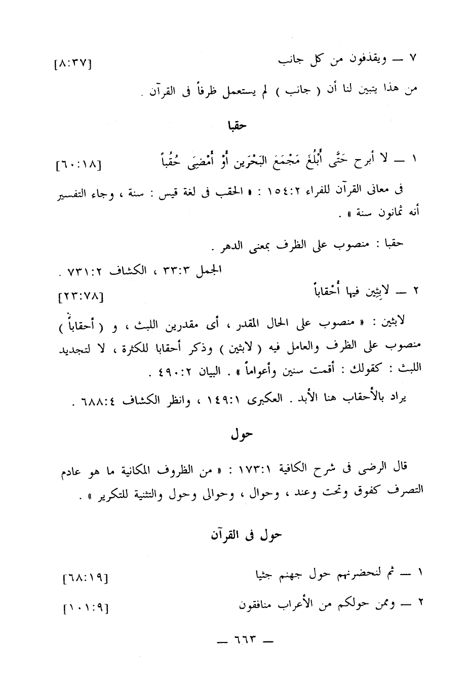 وفي البيان 2: 151: «(جانب الطور) منصوب لأنه مفعول ثان، (لواعدناكم) ولا يكون منصوبًا على الظرف، لأنه ظرف مكان مختص، وإنما الظرف منها ما كان مبهما غير مختص، والتقدير: واعدناكم إتيان جانب الطور الأيمن، ثم حذف المضاف».