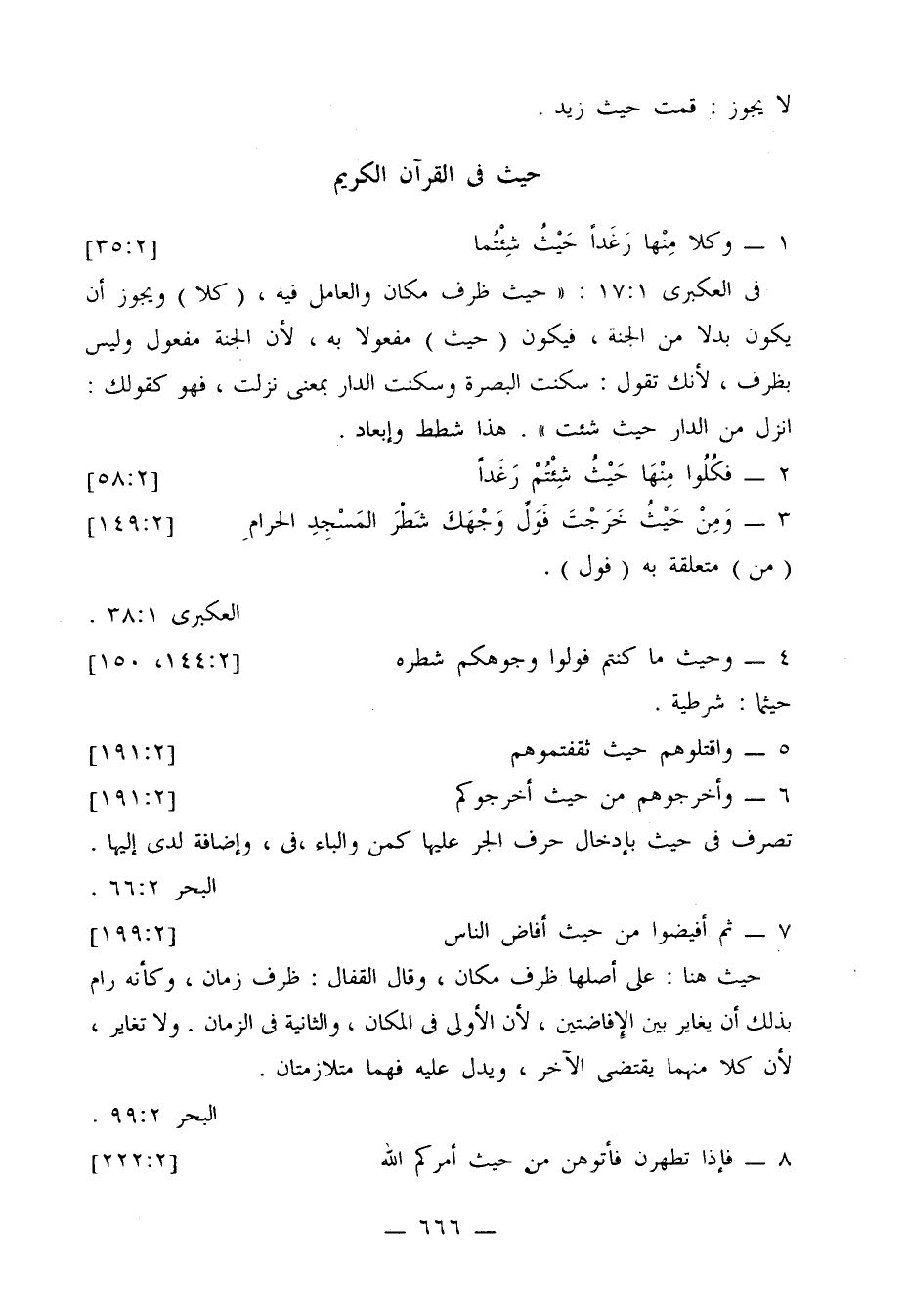 3 - قد تقع حيث مفعولاً به، وفاقًا للفارسي: (الله أعلم حيث يجعل رسالته)، إذ المعنى: أنه تعالى يعلم نفس المكان المستحق لوضع الرسالة فيه، لا شيئًا في المكان.