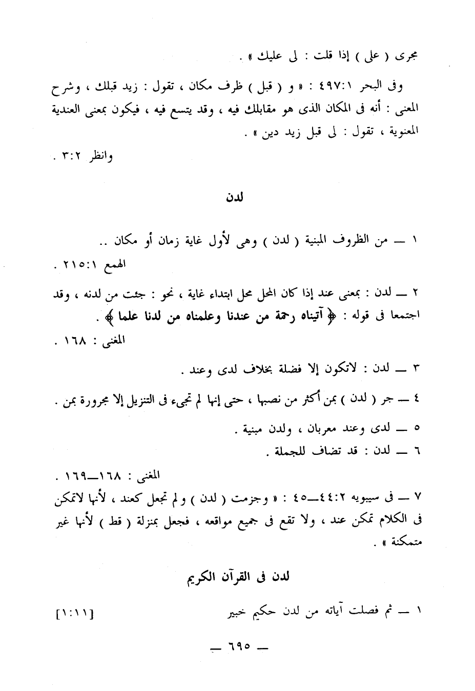 وفي سيبويه 2: 311: «وأما (قبل) فهو لما ولى الشيء، تقول: ذهب قبل السوق، أي نح السوق ولى قبلك مال، أي فيما يليك، ولكنه اتسع حتى أجرى