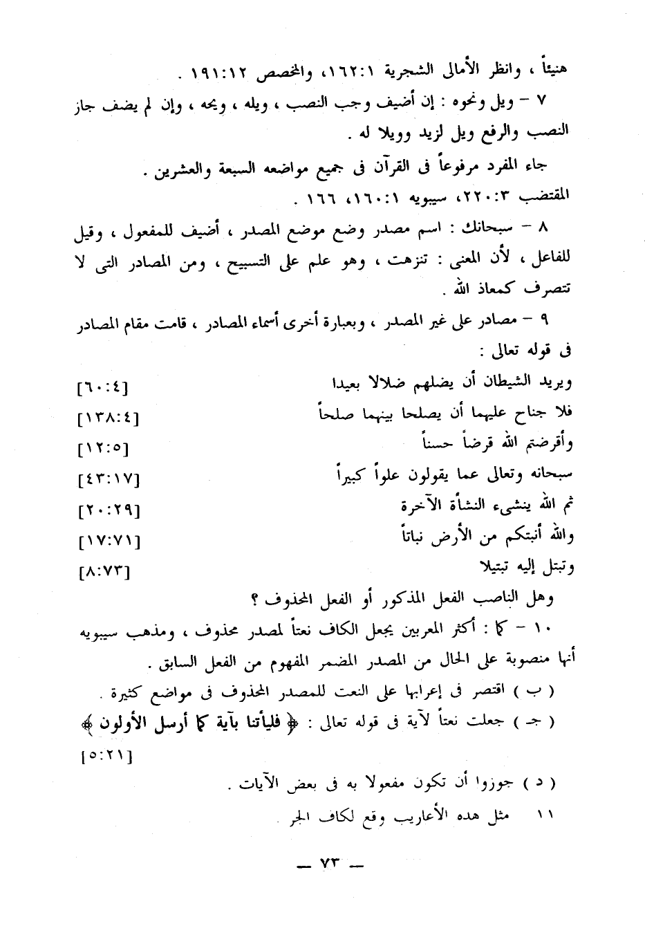 4 - يطرد جعل المصدر بدلا من فعله في الطلب كثيرا وجاء في الخبر قليلا {معاذ الله} 12: 79.