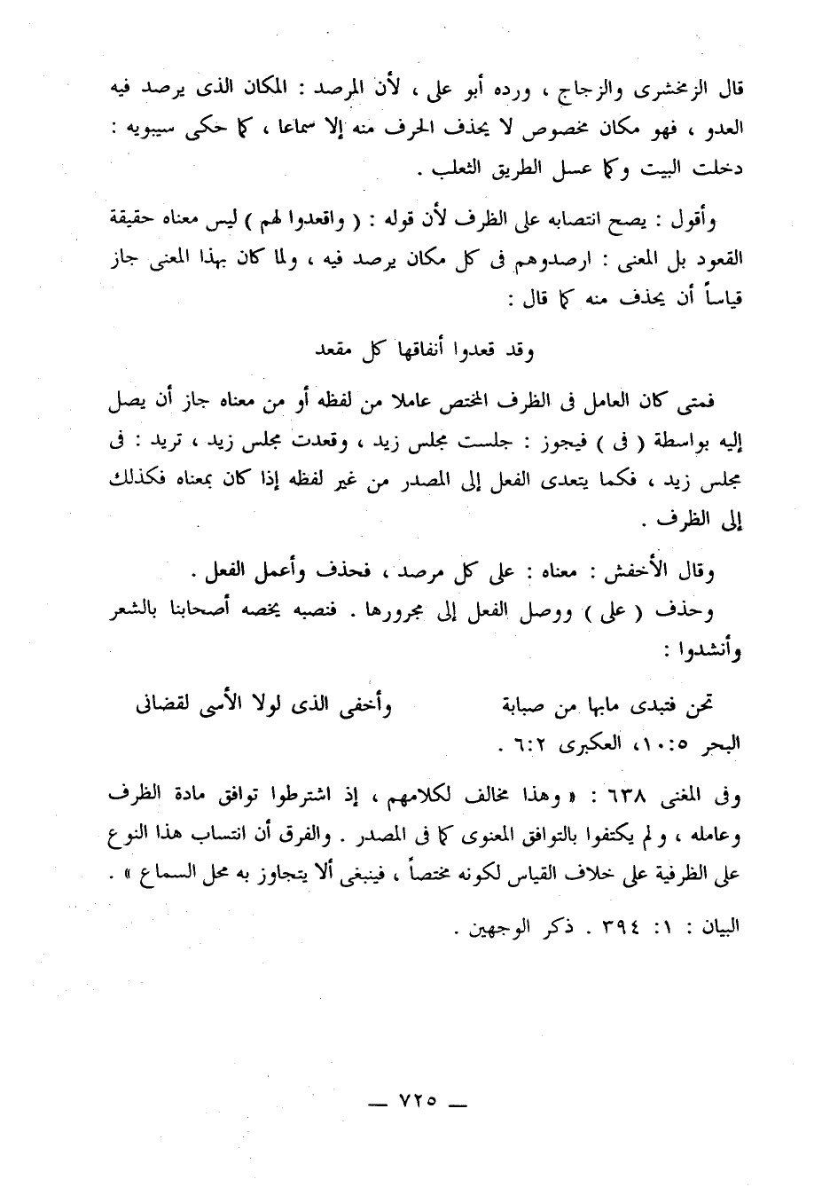 في معاني القرآن للزجاج 2: 476: «قال أبو عبيدة: المعنى: كل طريق، قال أبو الحسن الأخفش: (على) محذوفة، المعنى: اقعدوا لهم كل مرصد، وأنشد: