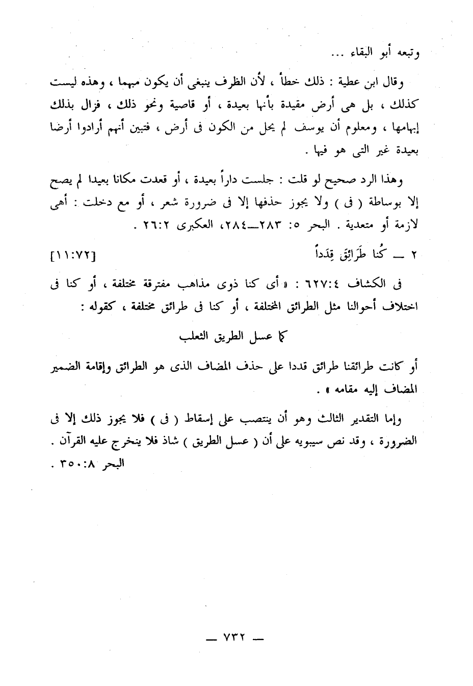 وزعم النحاس أنه غير مبهم، وكان ينبغي ألا يتعدى إليه الفعل إلا بحرف جر، إلا أنه حذف حرف الجر، فتعدى العقل إليه ... وهو قول ليس بمرضى».