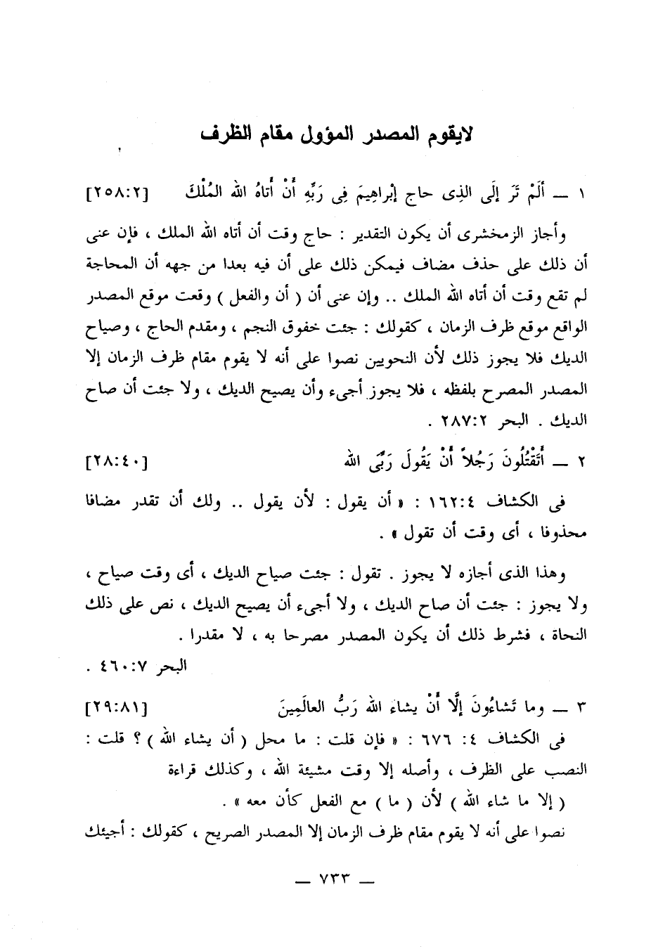 وإما التقدير الثالث وهو أن ينتصب على إسقاط (في) فلا يجوز ذلك إلا في الضرورة، وقد نص سيبويه على أن (عسل الطريق) شاذ فلا ينخرج عليه القرآن. البحر 8: 350.