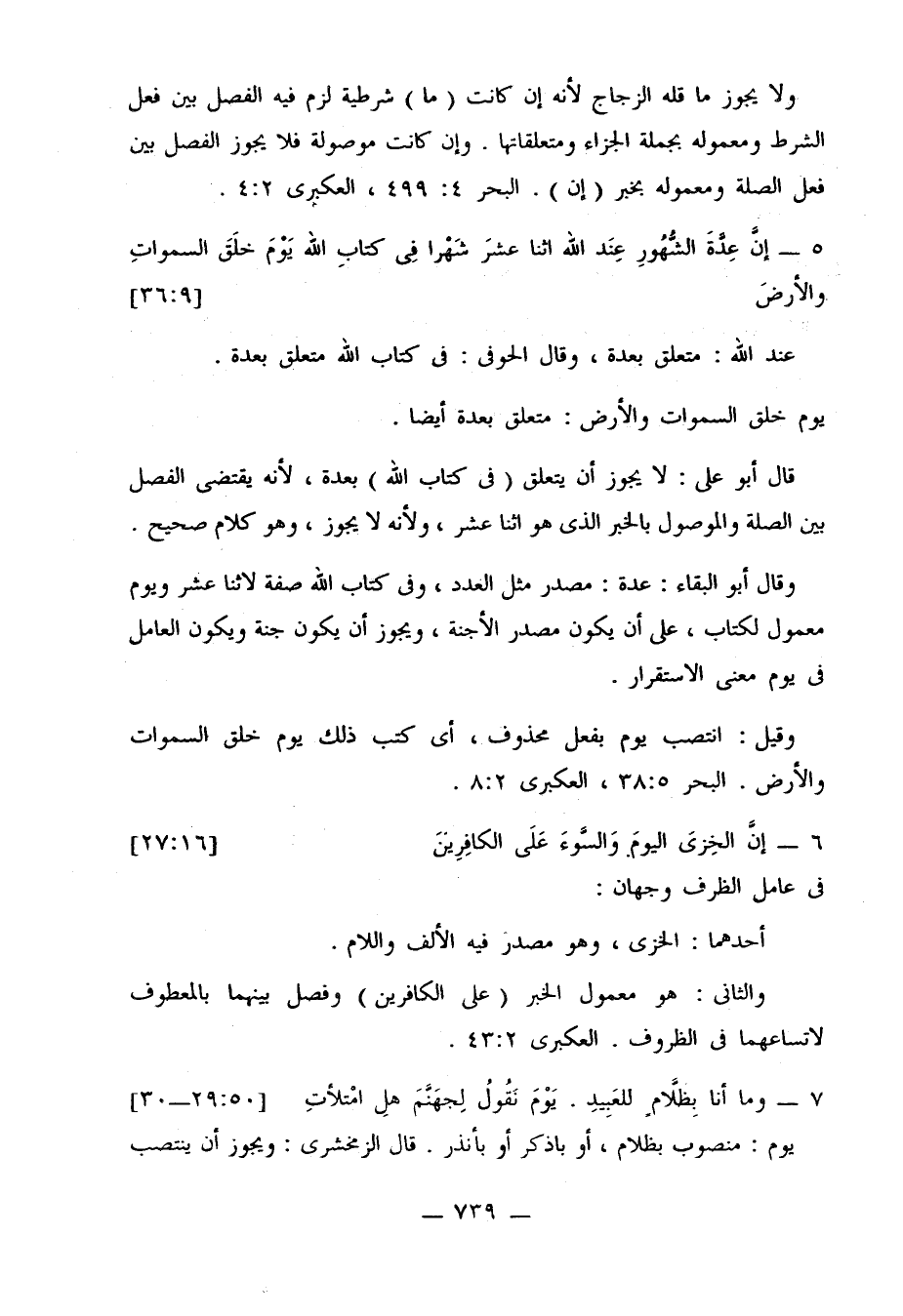 في معاني القرآن 1: 399: «ونصب (يوم تجد) بقوله (ويحذركم الله نفسه) كأنه قال ويحذركم الله نفسه في ذلك اليوم، ويجوز أن يكون نصب على قوله. (وإلى الله المصير) يوم تجد والقول الأول أجود».