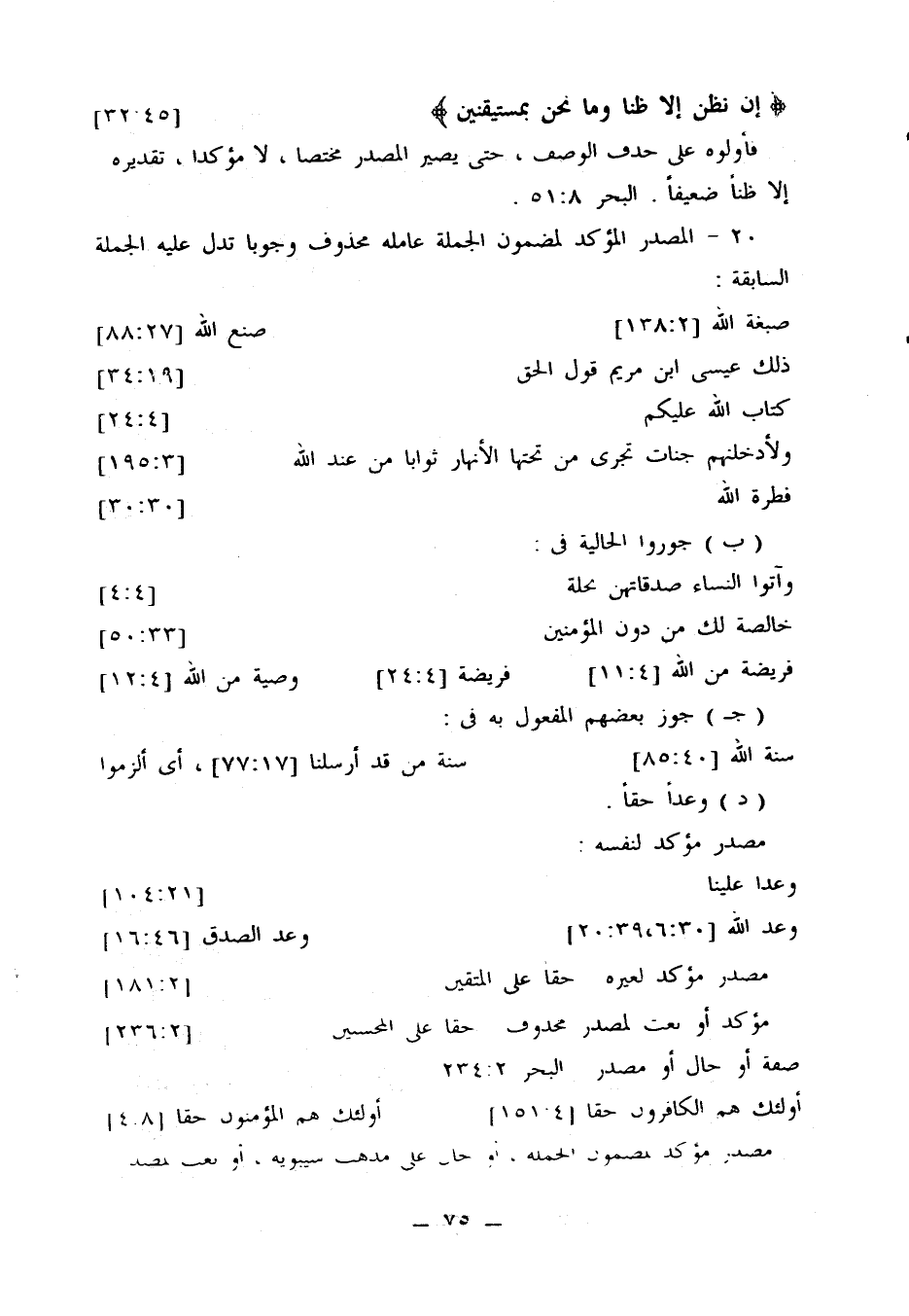 16 - في المصادر النكرات احتمل كثير منها أن يكون مفعولا مطلقا وحالا، وجاء في المعرفة في قوله تعالى: {وأقسموا بالله جهد أيمانهم}