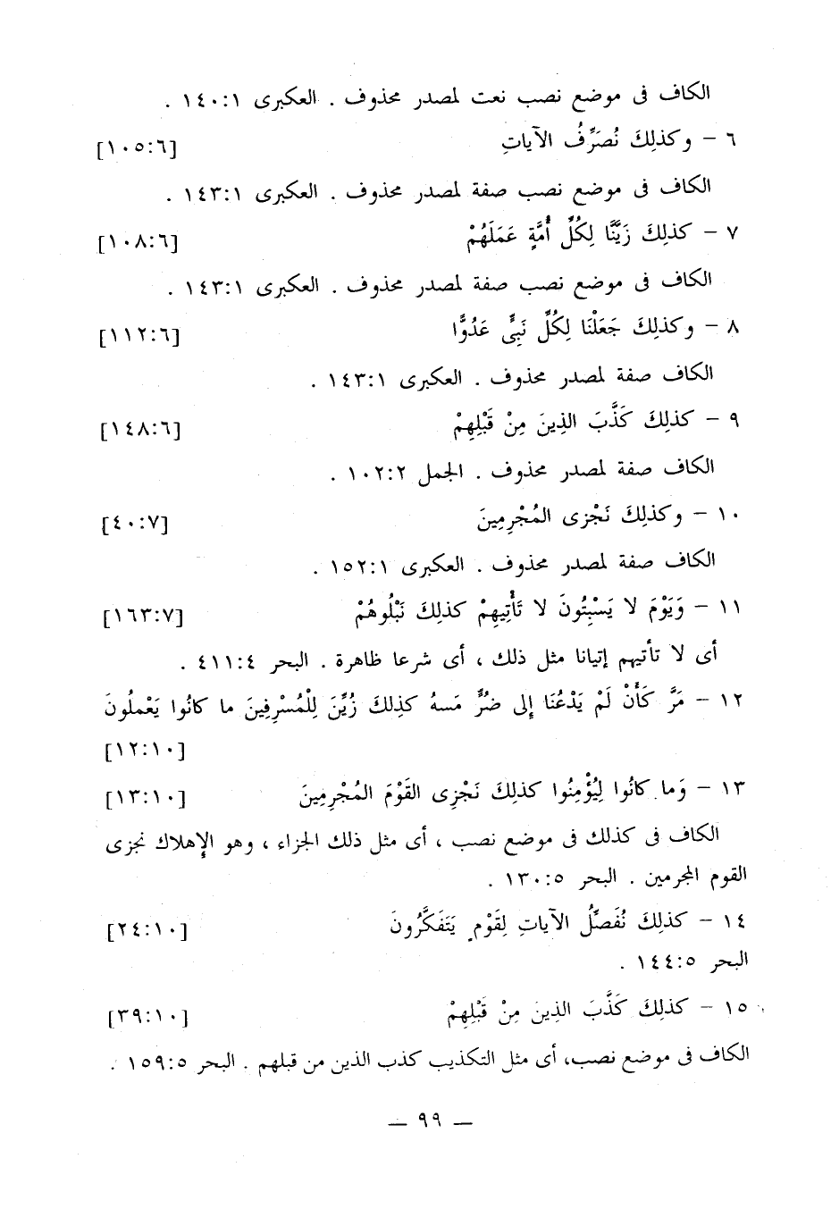 الكاف للتشبيه في موضع نصب. البحر 4: 138.